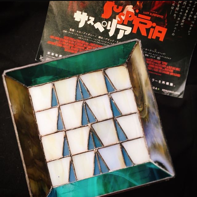 サスペリアの魅力の一つとして、恐怖の中で怪しく光る洗練された美術があります。私なんかサスペリアの美術が好きすぎて、ステンドグラスでキャンドルホルダーまで作ってしまうほど^^;(また後日それについて書きますね!)